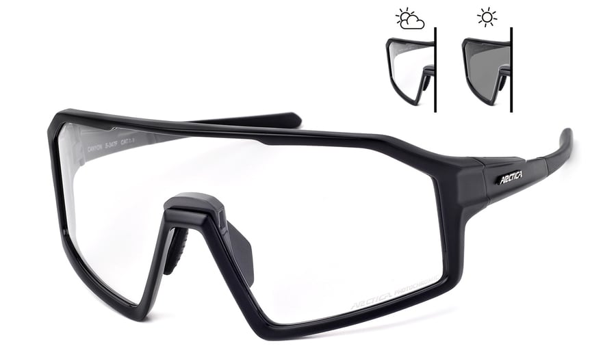Okulary z kolekcji rowerowej. Z dużą pojedynczą soczewką fotochromową. Niezawodne w najbardziej słoneczne dni.