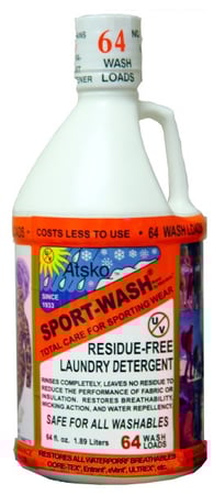 Atsko Sport-Wash jest bardzo efektywnym środkiem do prania wszystkich materiałów używanych do produkcji odzieży outdoorowej.
