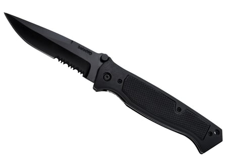 Materiał ten bardzo dobrze opiera się korozji. Jest odporny na pęknięcia i wykruszenia.Ostrze – w połowie ząbkowane – chowa się we wzmocnionej rękojeści. Zrobiono ją z materiałów syntetycznych – plastiku ABS, charakteryzującego się wysoką wytrzymałością i twardością, oraz gumy. Takie połączenie zapewnia doskonałą przyczepność – nóż dobrze leży w dłoni, nie wyślizguje się z niej.Specjalny system blokujący umożliwia otwieranie i zamykanie noża jedną ręką. Takie połączenie zapewnia doskonałą przyczepność – nóż dobrze leży w dłoni, nie wyślizguje się z niej.Specjalny system blokujący umożliwia otwieranie i zamykanie noża jedną ręką.