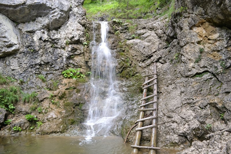 Góry Słowacji – Mała Fatra od południaBy kontynuować wędrówkę najpierw wracam do rozstaju, a po pokonaniu kilkunastu metrów wchodzę w wąwóz Sokół. Przede mną wyrasta ciąg drabinek usytuowanych między skalnymi ścianami, a ciekawostką jest, że po większych opadach w kanionie również pojawia się woda i niewielkie kaskady. Odcinek jest niesamowicie klimatyczny - ciasny wąwóz ze skałami porośniętymi mchem, delikatny chłód i magiczne echo.