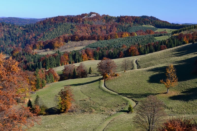 Plecaki turystyczne do 29 lNa wierzchołku czeka niezmiennie rozległa panorama, wzbogacona jesiennym, ostrym powietrzem. Na Wysokiej nie zabawiamy zbyt długo, bo choć widoki są rewelacyjne, to wolimy bardziej kameralne miejsca. Pod szczytem odbijamy w prawo, uciekając na szlak biegnący ku Przełęczy Rozdziela, jednak nigdy tam nie dotrzemy, bo i plan mamy inny.