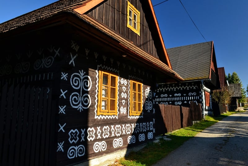 To jednak nie koniec eksploracji na dziś. Nieopodal Fackovskiego Sedla znajduje się bowiem wieś Čičmany, która słynie z charakterystycznie malowanych chałup. Będąc tak blisko, nie wypada tam nie zaglądnąć. Čičmany to skansen architektury ludowej, utworzony w 1977 roku ze względu na unikalną zabudowę. Drewniane domy udekorowane są białymi wzorami, a ornamentyka nawiązuje między innymi do lokalnych strojów ludowych, choć niegdyś była sposobem na nienagrzewanie ścian. Najstarsze budynki mają około 200 lat, a w kilku z nich znajdują się ekspozycje muzealne. Większość to jednak budynki prywatne, które można podziwiać, spacerując przez wieś.
