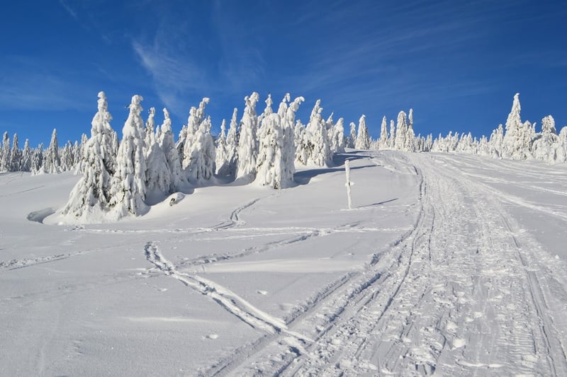 Całość trasy czarnej przebiega lasem, co tylko potęguje doznania, ponieważ drzewa są totalnie oblepione śniegiem. Jego waga sprawia, że niektóre drzewa wręcz uginają się pod jego ciężarem. Nie mogę przestać zachwycać się beskidzką zimą – krystaliczne czyste niebo, słońce podgrzewające atmosferę i biało-niebieski krajobraz wokół. Nic więcej nie potrzeba do szczęścia. Po upływie 1,5 godziny przyjemnego spaceru z niewielką deniwelacją docieramy na Halę Rysianka, gdzie otoczenie jeszcze bardziej zachwyca. Drzewa oblepione śniegiem i zatrzymane w stagnacji przez mróz wyglądają niczym śnieżni ludzie. Zaspy białego puchu sięgają 50-100 cm i do tego piękne panoramy na Tatry, Małą Fatrę, Babią Górę czy nieopodal Pilsko. Rysianka pod tym względem jest fenomenalna. Ostatni 100-metrowy odcinek do schroniska zajmuje nam aż 30 minut, ale nie sposób się nie gapić na taką scenerię. Zresztą… po co się spieszyć.