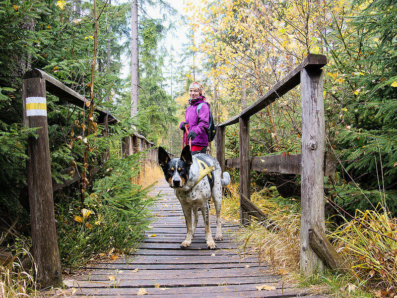 Najlepszy czas na górskie łazęgi z psem to jesień i wiosna, które oferują najlepsze warunki pogodowe dla naszych towarzyszy, a na szlakach jest zdecydowanie mniej ludzi. Tutaj podczas październikowego wypadu w Góry Stołowe (Niknąca Łąka).
