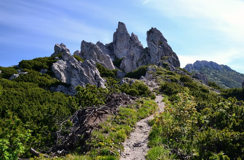 Po pokonaniu kolejnego odcinka wreszcie wyłania się przede mną kopuła szczytowa Siwego Wierchu, który wcale nie jest na wyciągnięcie ręki. Szlak niepostrzeżenie wznosi się w górę, a o zdobywaniu kolejnych metrów przypominają mi coraz rozleglejsze widoki. Siwy Wierch z każdym krokiem coraz bardziej hipnotyzuje, a jego skalista kopuła powoduje mały dreszczyk emocji. Wkrótce docieram na miejsce zwane Siwym Przechodem, które jest pełne dolomitowych formacji, wyglądających niczym labirynt. Szlak robi się niebywale interesujący oraz atrakcyjny widokowo, ponieważ jest na swój sposób unikalny.