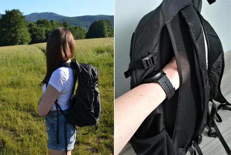 Na początek sprawdzam wagę szwedzkiego modelu. Rezultat 0,64 kg to naprawdę niewiele, zwłaszcza że dla mojego kręgosłupa każdy gram ma znaczenie. Drugim niepodważalnym atutem plecaka jest system nośny, czyli panel z siatki ze stelażem, który zapewniał mi podczas wędrówki komfort i wentylację na plecach. Mniejsze modele plecaków rzadko posiadają taki system, a jest on nie tylko wygodny, ale i bardzo praktyczny. Stabilizację i ergonomiczne rozłożenie ciężaru dodatkowo gwarantują pasy piersiowy i biodrowy, a ten drugi w razie potrzeby można zdemontować.