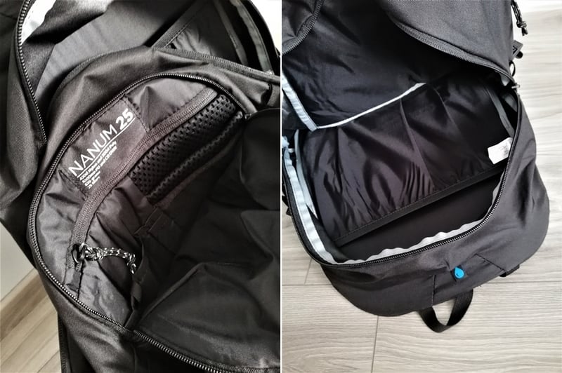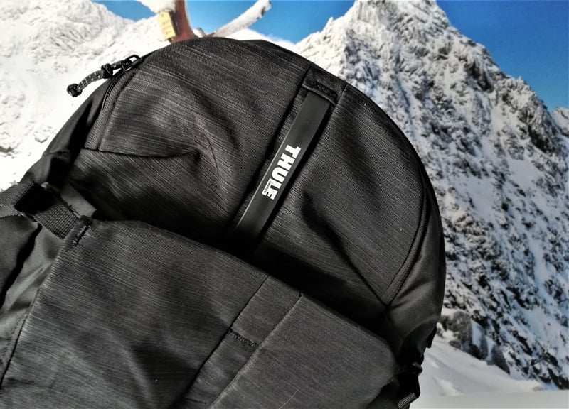Po dokładnych oględzinach z zewnątrz zaglądnijmy zatem do środka. Thule Nanum oferuje pojemność 25 l rozłożoną na trzy kieszenie. Od dwóch lat jestem fanką niewielkich plecaków i przeciwniczką noszenia na barkach powietrza. Uważam, że dobrze spakowany bagaż zmieści się w niewielkim modelu. Dzięki temu również lepiej zaplanujemy, co ze sobą musimy koniecznie zabrać w góry, a co niezbędne nie jest. Wracając do plecaka Thule Nunum 25 i jego możliwości. Pierwsza kieszeń z przodu nie jest zapinana, ale doskonale nada się na przechowanie mapy, peleryny przeciwdeszczowej czy apteczki. Druga komora, pośrednia, to idealny schowek na drobne przedmioty takie, jak portfel, klucze, przekąski oraz podręczne okulary przeciwsłoneczne, rękawiczki czy czołówkę. Komora główna ma oczywiście największą pojemność i posiada dodatkową wewnętrzną kieszeń np. na wspomniany bukłak. Pozostała przestrzeń pomieści odzież wierzchnią lub zamienną, prowiant, termos, wodę i wiele innego, niezbędnego ekwipunku turysty.