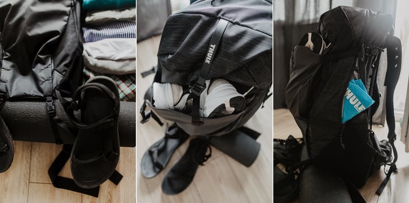 Thule Topio 30 jest niezwykle pojemny, a waży tylko 1,1 kg. To naprawdę niewiele, biorąc pod uwagę, jak wiele możemy do niego zmieścić. Kolejną najważniejszą rzeczą jest przewiewny panel tylny, wykonany z siatki, który przez całą wędrówkę zapewnia komfort i przyjemną „klimatyzację” dla pleców. Regulowany pasek piersiowy i pas biodrowy z kieszeniami zasługują na waszą uwagę. Ja już po pierwszych metrach wiedziałam, że to będzie mój idealny plecak w góry! Kieszenie biodrowe bez problemu mieszczą mniejszy aparat kompaktowy, większy portfel czy większy model telefonu.
