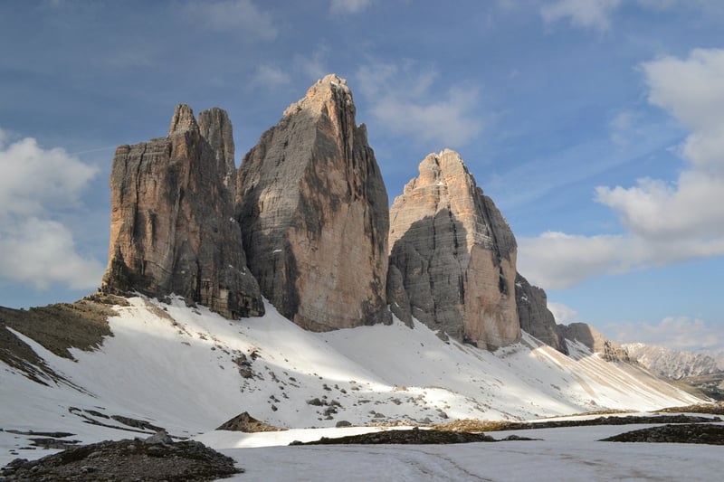 Trekking wokół Tre Cime zakłada wędrówkę drogą klasyczną, czyli najłatwiejszym szlakiem numer 101 w kolorze biało-czerwonym. Odpowiednie obuwie turystyczne zawsze w cenie. Szeroka, płaska autostrada biegnie u podnóża południowych ścian Tre Cime, a przewyższenie, jakie trzeba pokonać do celu, to zaledwie 134 metry. Liczby może nie powalają, ale krajobraz jak najbardziej. Bowiem od początku wędrówce towarzyszy widok na typowe strzeliste szczyty, skaliste granie i błękitne niebo.