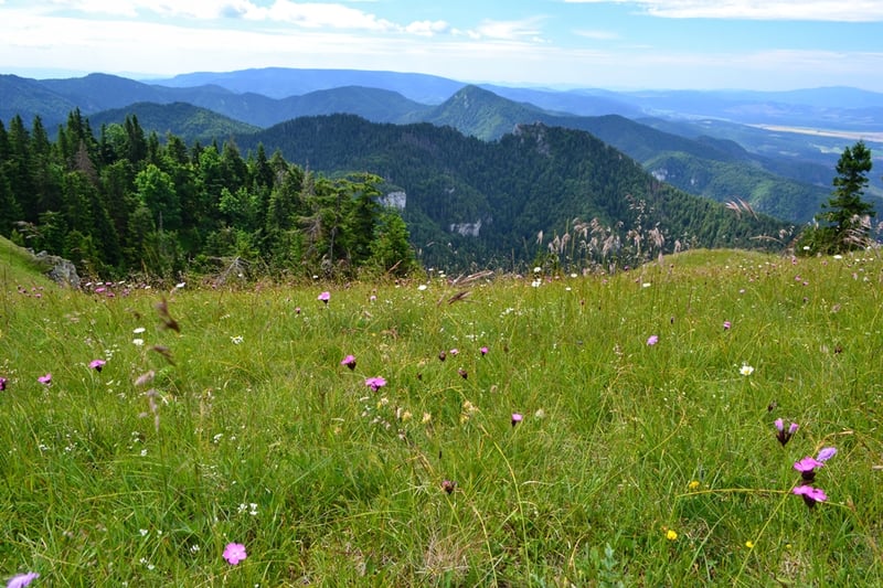 Niebawem zupełnie niepostrzeżenie wchodzę do niewielkiego lasku z zielonym, soczystym dywanem trawy, który robi niesamowite wrażenie. Kolejne 30 minut wędrówki to marsz zakosami wśród drzew, a ostatni kwadrans wiedzie odkrytym terenem. Po pokonaniu łącznie 3 km zdobywam szczyt Tlstá, który okazuje się całkiem widokowym draniem. Na wierzchołku o wysokości 1373 m n.p.m. jest sporo miejsca, a najładniej prezentuje się jego wschodnia wystawa na pasmo Wielkiej Fatry. Na szczycie nie ma tłumów, ruch jest umiarkowany, co potwierdza, że nawet przy łatwej dostępności to pasmo wciąż nie jest popularne. Panorama ze szczytu jest ładna, ale porównując ją z Halną Fatrą, czuję lekki niedosyt. Na szczęście to nie koniec atrakcji na dziś.