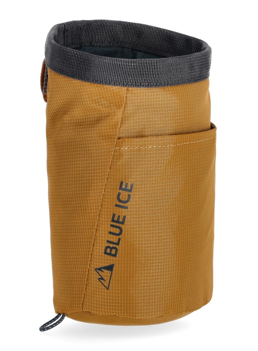 Blue Ice Sender Chalk Bag to ultralekki, minimalistyczny woreczek na magnezję, idealny dla wspinaczy poszukujących lekkiego i kompaktowego rozwiązania. Jest wykonany z materiałów pochodzących z nadwyżek produkcyjnych plecaków marki Blue Ice, co podkreśla jego ekologiczny charakter.