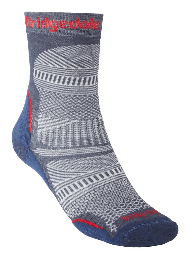 Prawie niewidoczny, płaski szew przy palcach nie powoduje podrażnień. Pięta 3D w kształcie litery Y zapobiega ześlizgiwaniu się skarpety. Każda skarpeta Bridgedale jest idealnie dopasowana. Po praniu wraca do pierwotnych kształtów i ponownie dopasowuje się do stopy.
