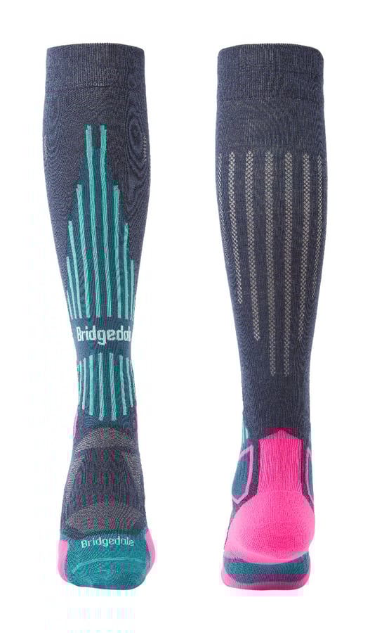 BRIDGEDALE Skarpety narciarskie damskie Lightweight Merino Performance Over Calf Wmn dark denim/pink