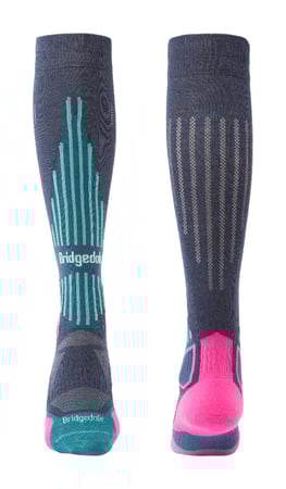 Bridgedale Skarpety narciarskie Lightweight Merino Performance Over Calf Wmn Graphite/Pink