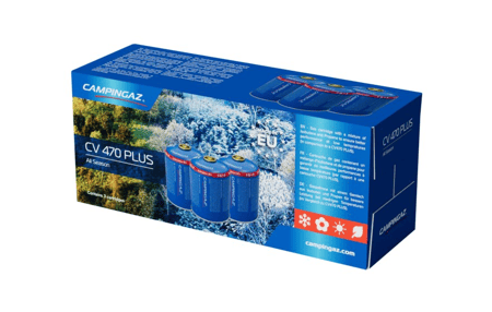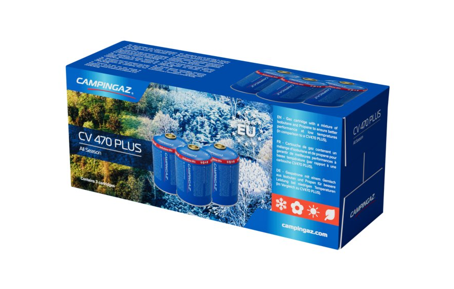 3-pak kartuszy gazowych Campingaz® CV470 Plus All Season zawiera wysokowydajną mieszankę izobutanu i propanu, oferując lepszą wydajność przez cały rok do -10°C, nawet gdy kartusz jest bliski opróżnienia.
