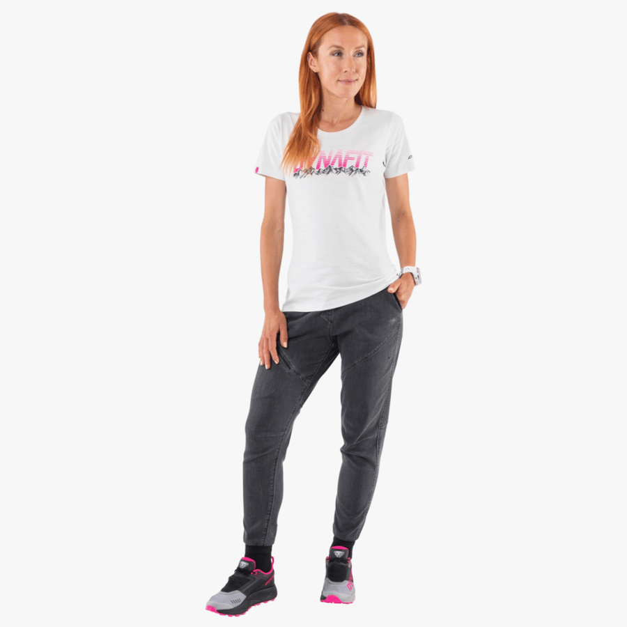Stylowa koszulka bawełniana z różnymi wzorami graficznymi. Graphic dla kobiet wprowadza styl DYNAFIT #SPEEDUP do codziennego życia.