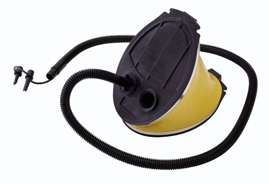 Bellows Foot Pump. Posiada trzy wymienne końcówki. Pojemność to 3 litry. Przyda się szczególnie tam, gdzie nie ma dostępu do prądu w celu napompowania materaca czy innych akcesoriów.
