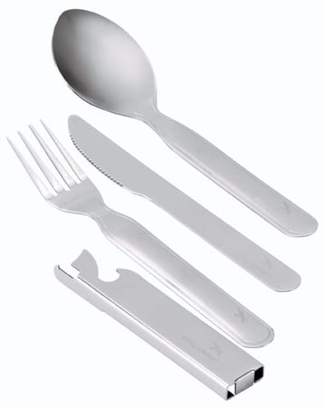 EASY CAMP Sztućce podróżne TRAVEL CUTLERY DELUXE - podstawowe wyposażenie każdego podróżnika. Ten niezbędnik zmieści się nawet w małej kieszonce, a przyda się gdziekolwiek, gdzie będziesz chciał zjeść posiłek. Zestaw ten zawiera nóż, widelec, łyżkę oraz otwieracz do butelek i puszek. Wykonany z wytrzymałych materiałów z precyzją z której znana jest już firma Easy Camp. Easy Camp to połączenie dobrej jakości, trwałości, nowoczesnego designu ze stosunkowo niską ceną. Wykonany z wytrzymałych materiałów z precyzją z której znana jest już firma Easy Camp. Easy Camp to połączenie dobrej jakości, trwałości, nowoczesnego designu ze stosunkowo niską ceną.
