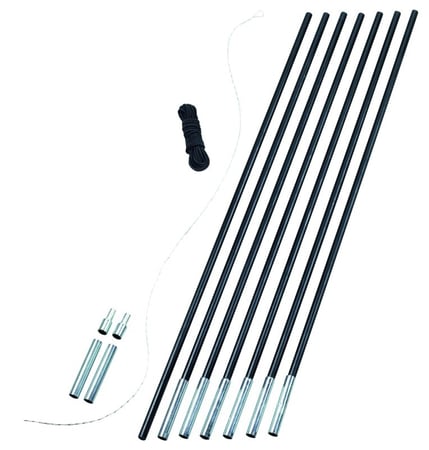 Zestaw do samodzielnego składnia Pole DIY to 7-częściowy zestaw pałąków o średnicy 8,5 mm z włókna szklanego o łącznej długości 4 metrów. Zestaw zawiera tulejki przy każdym pałąku, 2 męskie końcówki do zaślepiania zestawu oraz elastyczny sznur, gumę do łączenia pałąków. Zestaw zawiera przyrząd ułatwiający przewlekanie pałąków. Pałąki można łączyć w dowolny sposób. Wykonane z włókna szklanego odznaczają się wytrzymałością, giętkością oraz odpornością na wyginanie, można je stosować w większych namiotach.