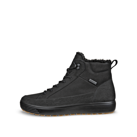 Buty męskie ECCO Soft 7 Tred GORE-TEX Boot M to wysokie buty, które łączą nowoczesny design z funkcjonalnością. Wyposażone w podeszwy zewnętrzne w stonowanych kolorach oraz wodoodporną technologię GORE-TEX, zapewniają stopom suchość i komfort w chłodne dni.