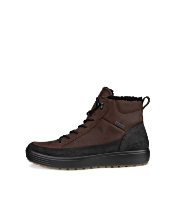 Buty męskie ECCO Soft 7 Tred GORE-TEX Boot M to wysokie buty, które łączą nowoczesny design z funkcjonalnością. Wyposażone w podeszwy zewnętrzne w stonowanych kolorach oraz wodoodporną technologię GORE-TEX, zapewniają stopom suchość i komfort w chłodne dni.