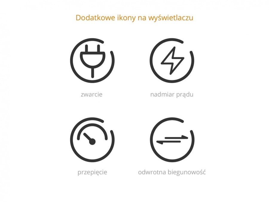 4-poziomowy system zabezpiecza przed przepięciem, odwróconą polaryzacją, przeładowaniem i zbyt wysokim napięciem.