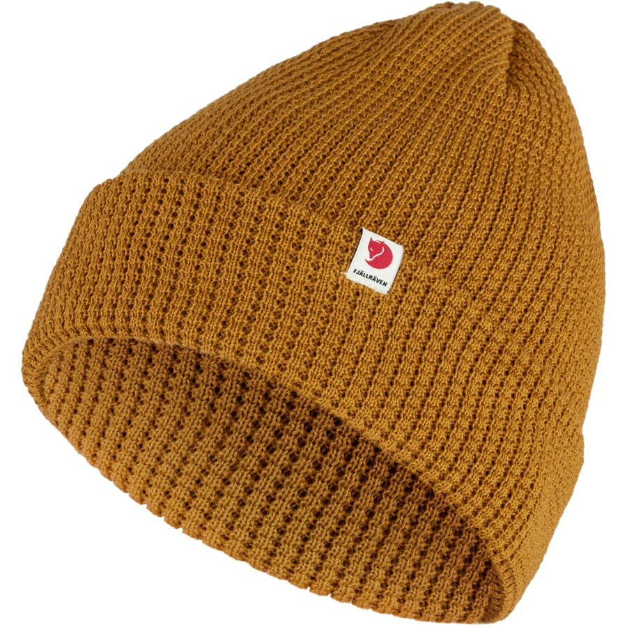 Fjallraven Tab Hat to miękka i wygodna czapka z dzianiny poliestrowej z recyklingu. Szeroko wywinięty dolny brzeg ma naszywkę tekstylną z logo marki. Czapka odprowadza wilgoć i szybko schnie, dzięki czemu sprawdzi się zarówno na co dzień, jak i w górach.