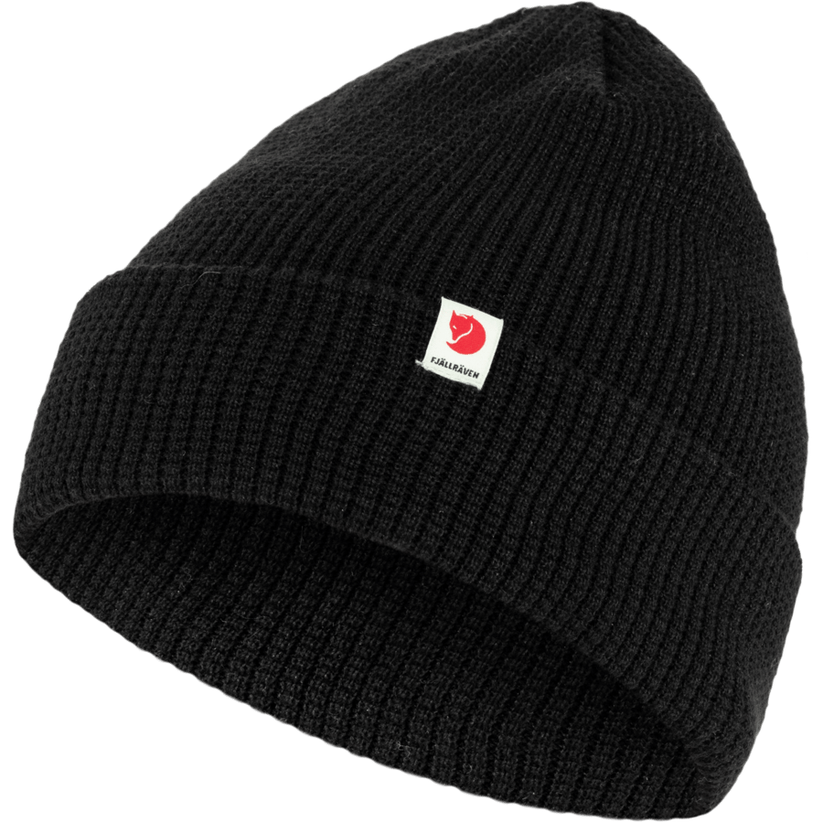 Fjallraven Tab Hat to miękka i wygodna czapka z dzianiny poliestrowej z recyklingu. Szeroko wywinięty dolny brzeg ma naszywkę tekstylną z logo marki. Czapka odprowadza wilgoć i szybko schnie, dzięki czemu sprawdzi się zarówno na co dzień, jak i w górach.