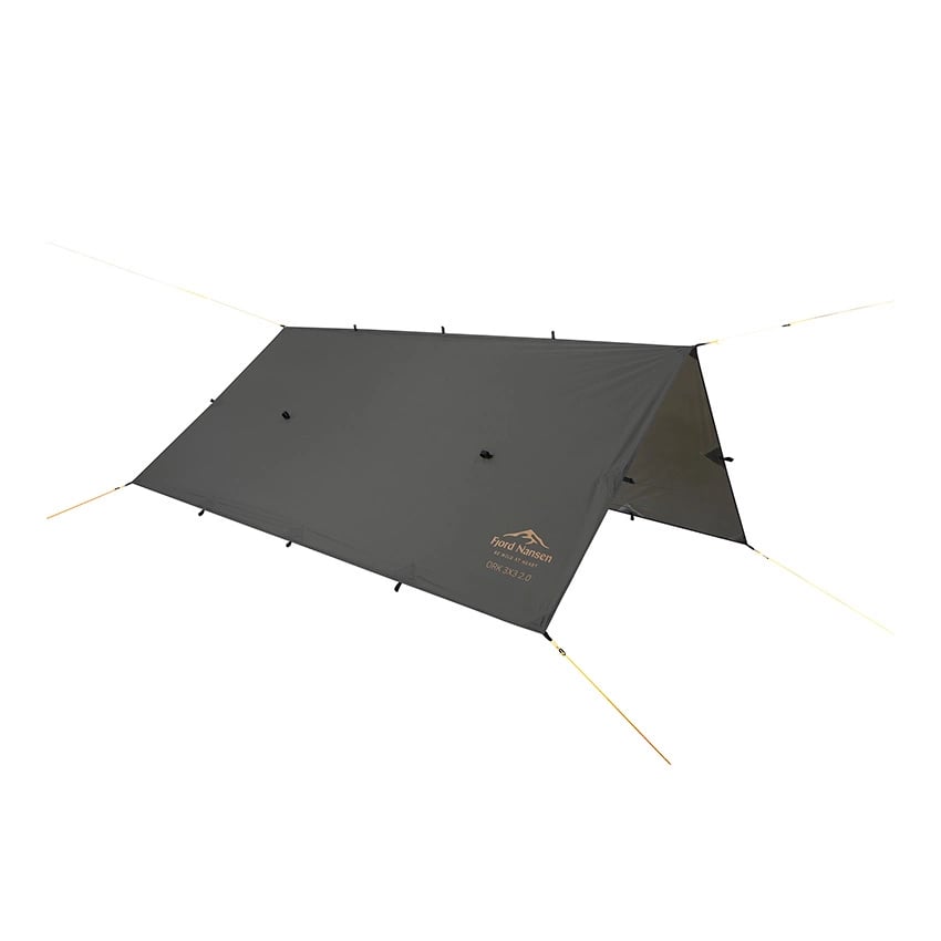 Ork 3×3 to uniwersalny tarp dla osób śpiących w terenie, umożliwiający różnorodne konfiguracje zadaszenia dzięki wszytym tasiemkom do mocowania odciągów. Może być rozwieszony klasycznie, jako wiatka ze ściankami lub daszek o różnej długości. W zestawie znajdują się szpilki i odciągi.