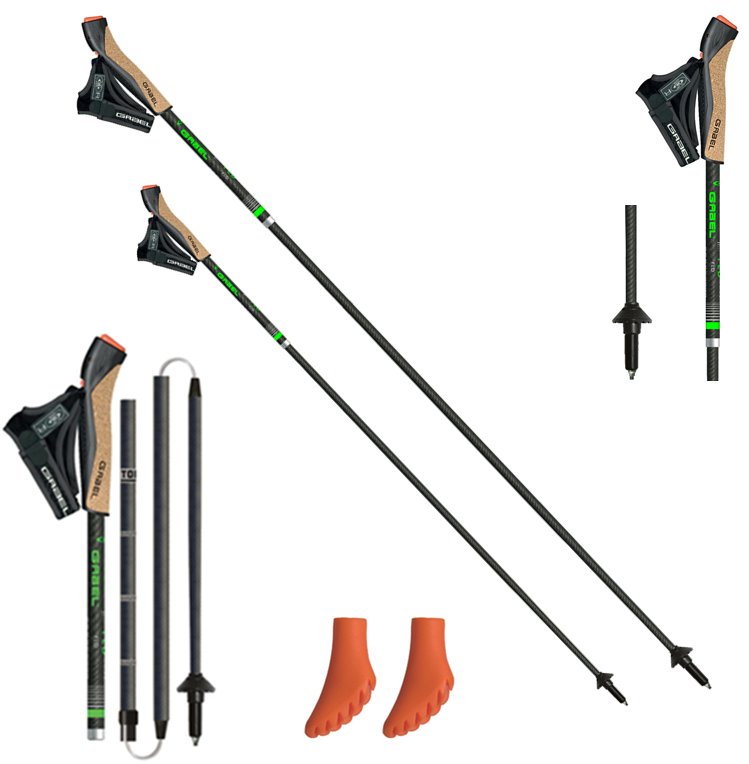 Gabel FLD Carbon to kije do nordic walking. Wykonany z włókna węglowego. Zaprojektowany przy użyciu technologii Wired, która umożliwia szybkie składanie kijów.