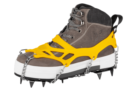 Raczki Explorer wykonano z solidnych materiałów o stosunkowo niskiej wadze. 14 stalowych zębów zapewni ci doskonałą przyczepność na śniegu i lodzie. Raczki dopasujesz do każdego obuwia turystycznego czy trekkingowego dzięki konstrukcji z elastycznej gumy.