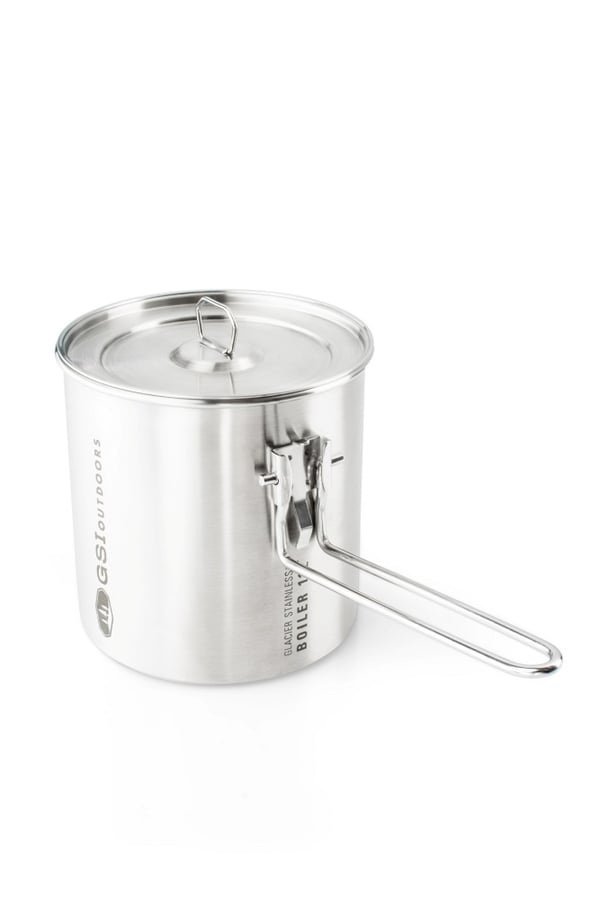 Lekki, solidnie wykonany garnek stalowy z pokrywką i składanym uchwytem. GSI Glacier Stainless Boiler spisze się i na pikniku, i w wymagających górskich warunkach.