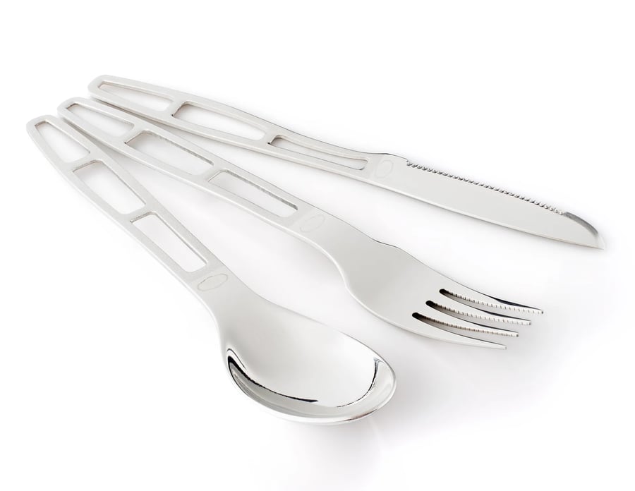 Glacier Stainless 3 pc. to sztućce z kutej stali nierdzewnej. Wytrzymały zestaw przyborów, który jest na tyle lekki, aby go spakować na każdą przygodę.