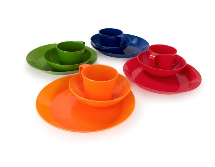 W tych naczyniach każdy posiłek smakuje lepiej! Zwłaszcza na łonie natury. Lekkie i wytrzymałe talerzyki i kubeczki na każdą wycieczkę dla 4-osobowej rodziny.Klasyczny design i żywe kolory zestawu