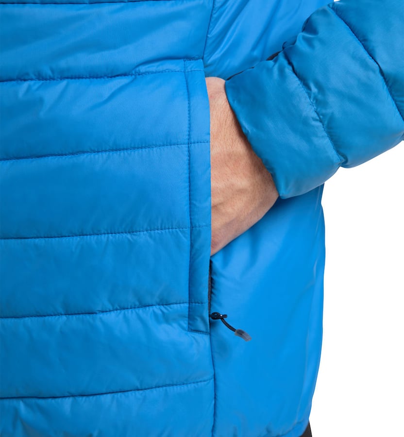 Męska kurtka z kapturem wypełniona niezwykłym materiałem syntetycznym Mimic Gold. Naśladuje ocieplające właściwości puchu, równocześnie zapewniając doskonałą wydajność w mokrych warunkach.