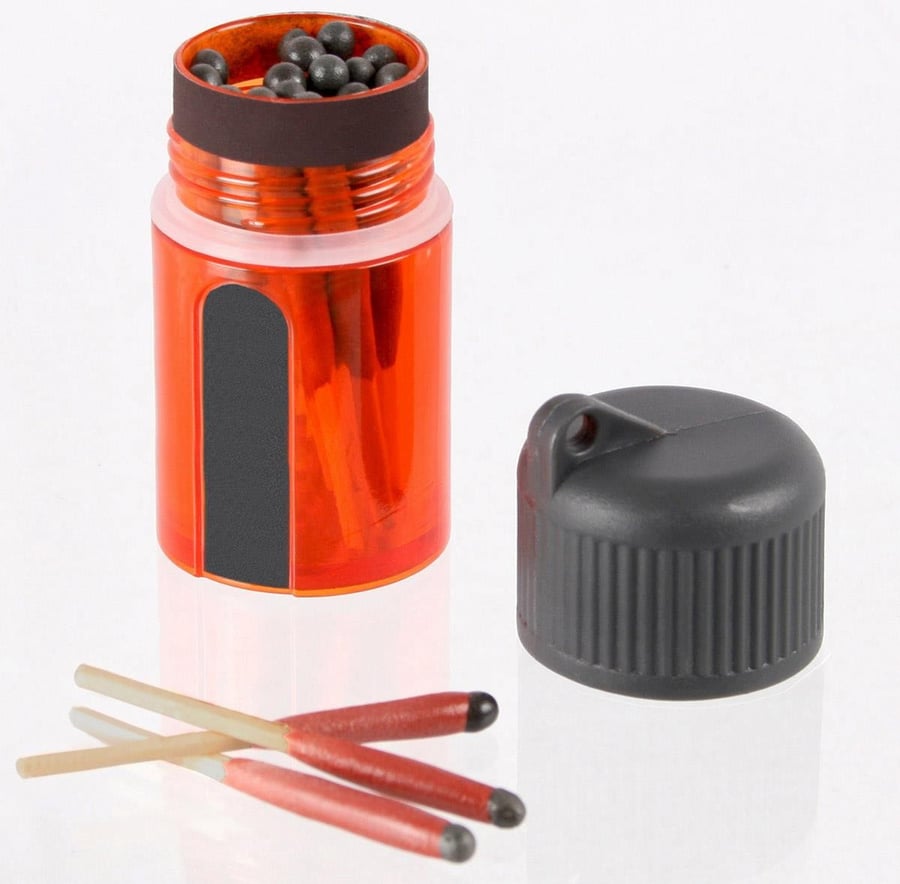 Niezawodne zapałki sztormowe. Stormproof Matches palą się nawet w trakcie silnego wiatru i deszczu. Wodoodporny pojemnik z integralnym zapalnikiem zawiera 25 zapałek.