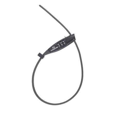 W pełni regulowana kłódka linkowa, którą można szczelnie zabezpieczyć wokół bagażu. Korpus ze stopu cynku przesuwa się wzdłuż 40-centymetrowej szekli z powlekanej stali z resetowalną 3-cyfrową kombinacją cyfr.