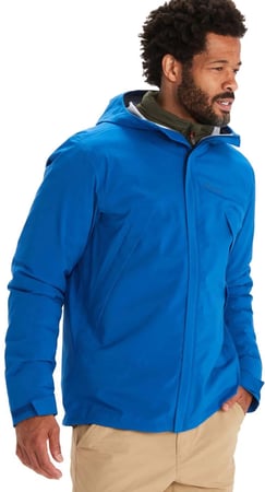 PreCip® Eco Pro z wodoodporną laminacją Marmot® NanoPro™ i podklejanymi szwami dla stuprocentowej szczelności blokuje deszcz podczas wędrówek, spływów kajakowych lub spacerów w mieście.