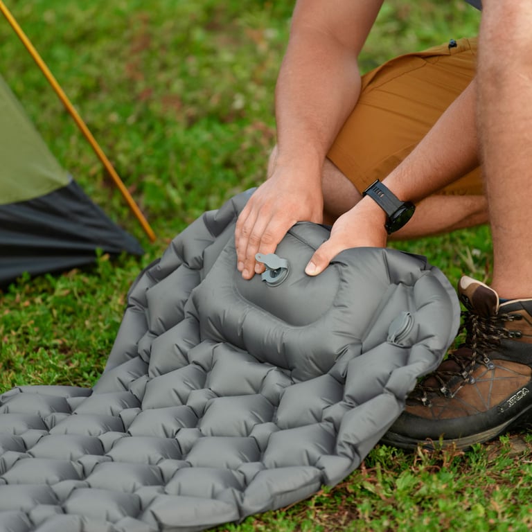 Wbudowana pompka w materacu znacząco ułatwia przygotowanie miejsca do spania – bez potrzeby noszenia dodatkowego sprzętu. Dzięki zintegrowanej pompce (najczęściej obsługiwanej stopą lub ręką), możesz szybko i wygodnie napompować materac w dowolnym miejscu, bez wysiłku i hałasu typowego dla pompek zewnętrznych. To idealne rozwiązanie na biwakach, campingach i wędrówkach, gdzie liczy się mobilność i niezależność. Dodatkową zaletą jest brak ryzyka zgubienia osobnej pompki – wszystko, czego potrzebujesz, masz zawsze przy sobie.