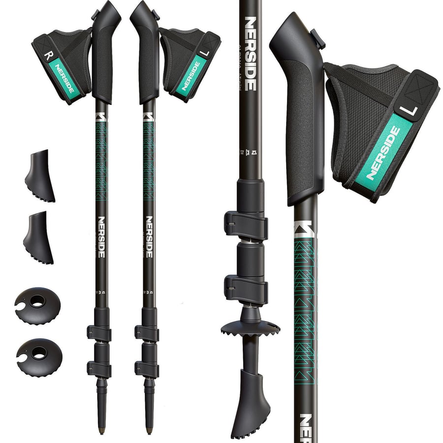 W zestawie znajdują się nakładki z TPR (termoplastycznej gumy) oraz talerzyki letnie, które zwiększają wszechstronność kijków. Nakładki zapewniają dodatkową przyczepność i chronią końcówki podczas marszu po twardych nawierzchniach, a talerzyki zapobiegają zapadaniu się kijków w miękkim terenie – np. na piasku lub leśnej ściółce. To praktyczne akcesoria, które pozwalają korzystać z kijów przez cały rok.