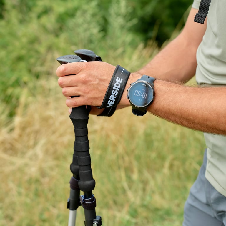 Rękojeść wykonana z pianki EVA i tworzywa sztucznego została zaprojektowana tak, by zapewniać pewny i wygodny chwyt – nawet podczas wielogodzinnych wędrówek w zróżnicowanym terenie. Jej przedłużona część pozwala swobodnie zmieniać pozycję dłoni na stromych podejściach bez konieczności regulacji długości kija. Pętla nadgarstkowa stabilizuje kij podczas marszu i zmniejsza ryzyko jego przypadkowego upuszczenia.