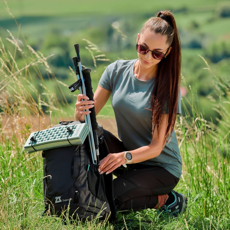 Konstrukcja z aluminium 7075 zapewnia wyjątkową wytrzymałość przy stosunkowo niskiej wadze – około 700 g para. Po złożeniu kije trekkingowe w góry mają jedynie 38 cm długości, dzięki czemu bez problemu zmieszczą się w plecaku, bocznej kieszeni czy bagażu podręcznym.