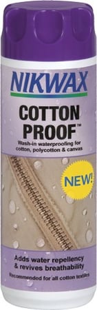 Nikwax Cotton Proof™ został specjalnie zaprojektowany i zoptymalizowany dla oddychającej bawełny, mieszanek bawełna-poliester i brezentu; na pojedynczych włóknach pozostawia elastyczną warstwę hydrofobową, co pozwala oparom wilgoci przedostać się na zewnątrz, zachowując właściwości oddychające, przedłużając żywotność sprzętu i optymalizując jego wydajność przy deszczowej pogodzie.