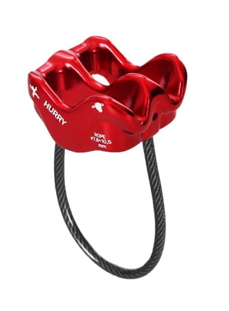 - umożliwia asekurację z linami pojedynczymi (zakres średnicy lin: 9-10,5 mm) i podwójnymi (zakres średnicy lin: 7,8-9,5 mm).