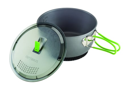 Uchwyty składają się, więc zaoszczędzisz miejsce w plecaku. Terra Xpress HE posiada napromiennik zwiększający wydajność podczas gotowania. Przezroczysta pokrywka może także pełnić funkcję cedzaka. Całość przeniesiesz w wygodnym siatkowym pokrowcu. Optimus jest producentem naczyń turystycznych. Ich lekkie, wydajne i z najwyższej jakości materiałów produkty kupują alpiniści, wspinacze i żeglarze.