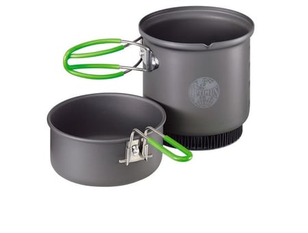 Mały, ale wszechstronny zestaw naczyń z anodyzowanego aluminium. Terra Weekend HE Cookset zawiera garnek o pojemności 0,95 l oraz pokrywkę, którą możesz też wykorzystać jako patelnię.