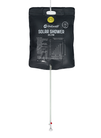 Solar Shower to praktyczny element, który pozwoli Ci wziąć prysznic w każdych warunkach turystycznych.Ten model wykonano z wytrzymałego tworzywa barwionego na ciemny kolor, dzięki czemu woda umieszczona wewnątrz szybciej sie nagrzewa