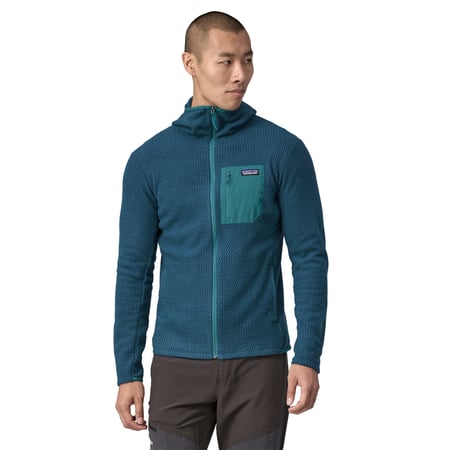 Patagonia R1® Air Full-Zip Hoody to polarowa bluza dla mężczyzn. Z zamkiem na całej długości, kapturem z wysokim kołnierzem i antyzapachową impregnacją. Wykorzystaj ją górskim szlaku albo podczas treningu w chłodny dzień.