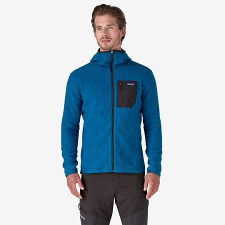 Patagonia R1® Air Full-Zip Hoody to polarowa bluza dla mężczyzn. Z zamkiem na całej długości, kapturem z wysokim kołnierzem i antyzapachową impregnacją. Wykorzystaj ją górskim szlaku albo podczas treningu w chłodny dzień.