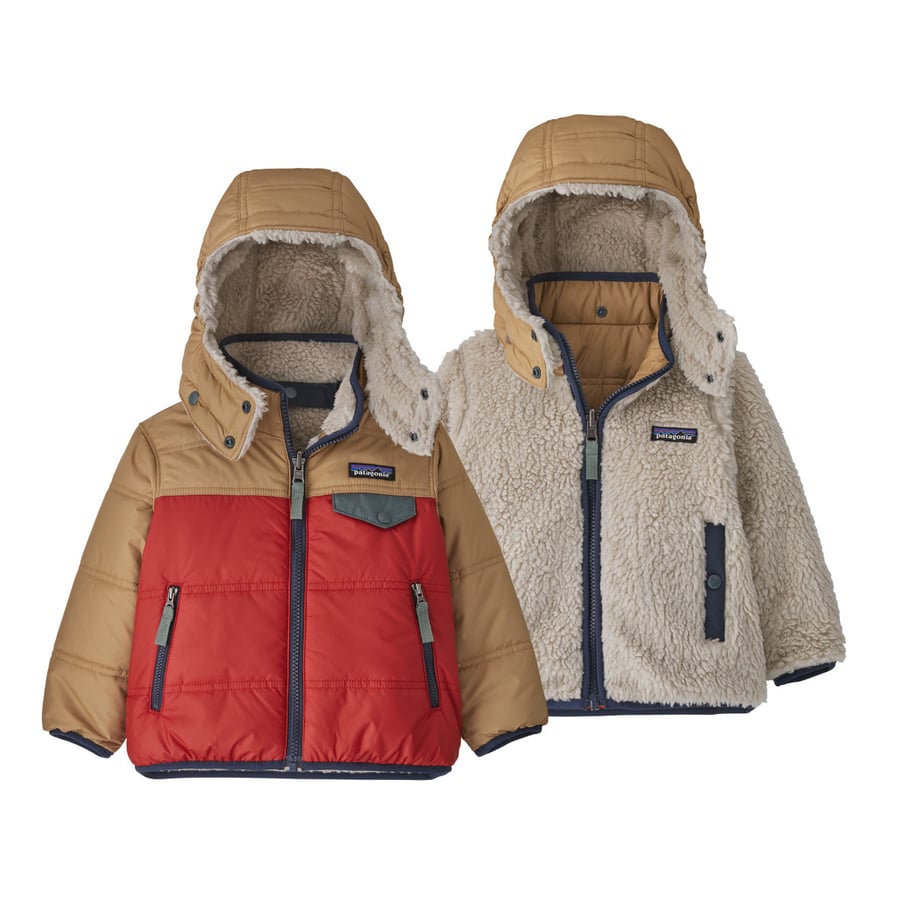 Dwustronna kurtka dzięcęca. Baby Reversiblee Tribbles Hoody posiada po jednej stronie polar, a po drugiej ocieplinę syntetyczną Thermogreen z poliestru z recyklingu.